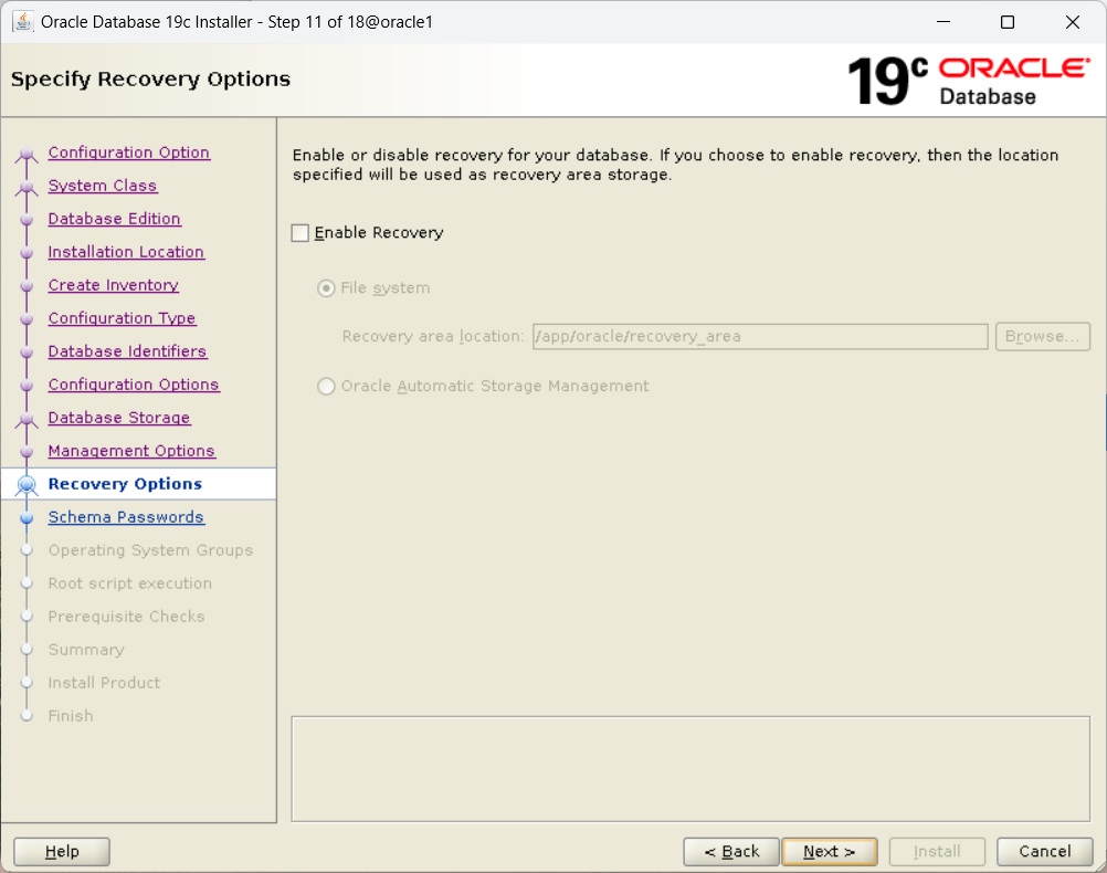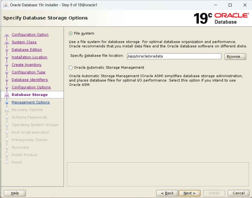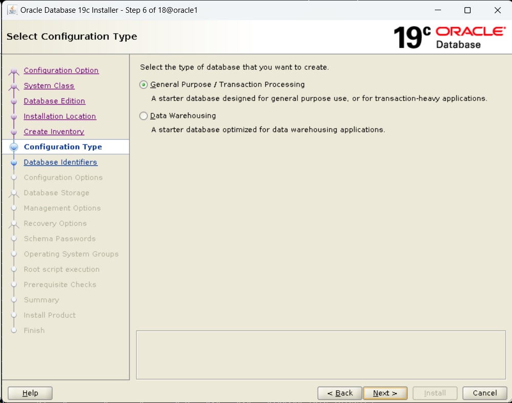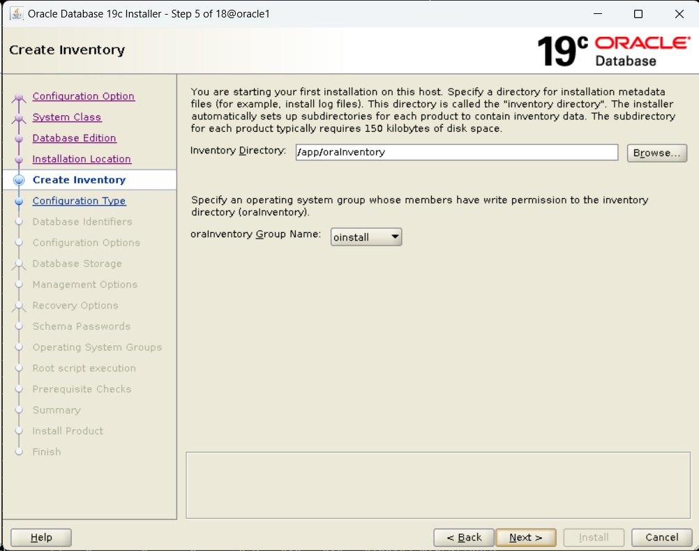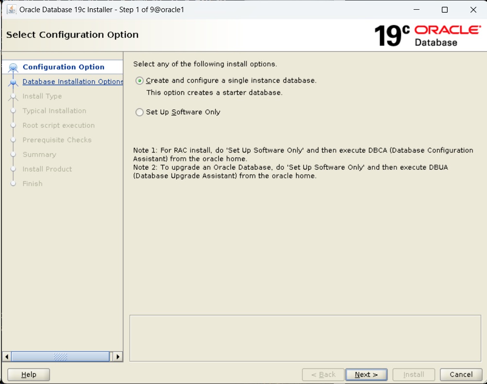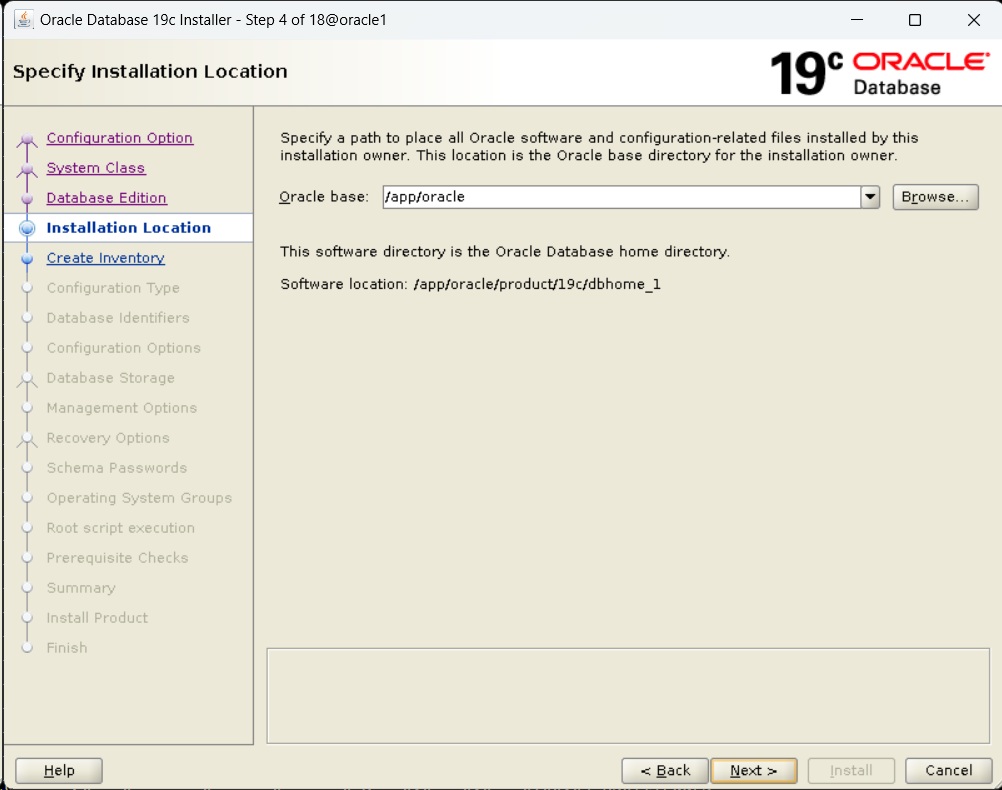 CV_ASSUME_DISTID:RHEL9이 값은 오라클 데이터베이스 설치 시 특정 리눅스 배포판을 인식하도록 설정하는 환경 변수입니다.ORACLE_BASE:/app/oracleORACLE_HOME:$ORACLE_BASE/product/19c/dbhome_1ORACLE_SID:ORCLCDB- Installation :