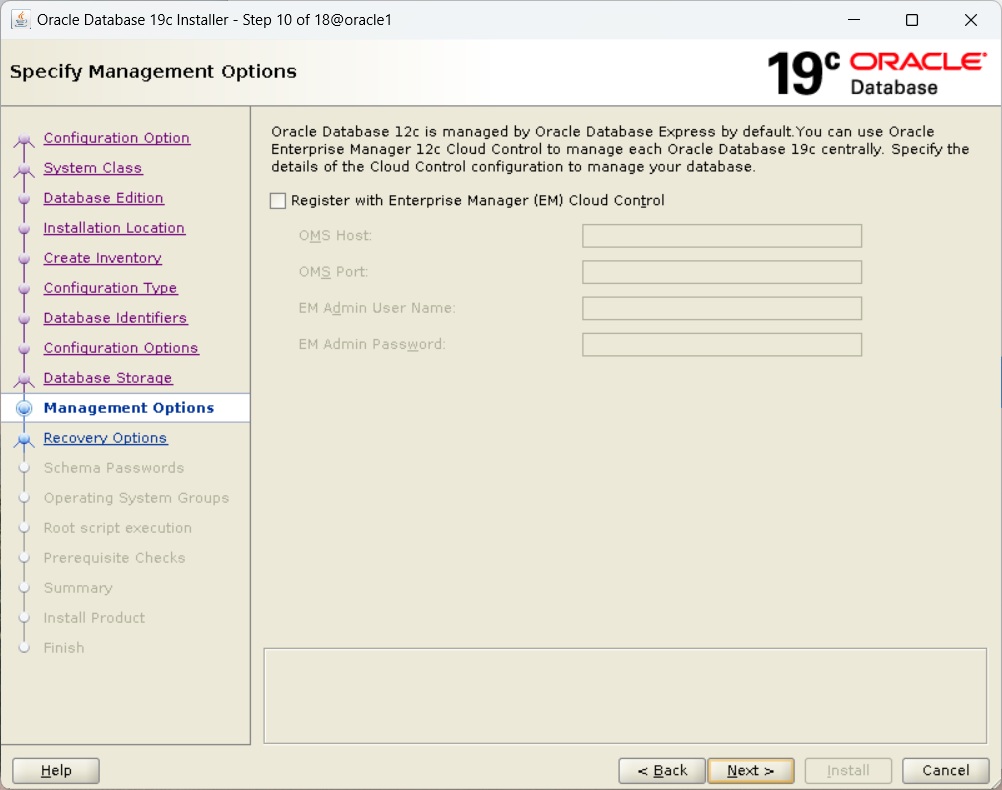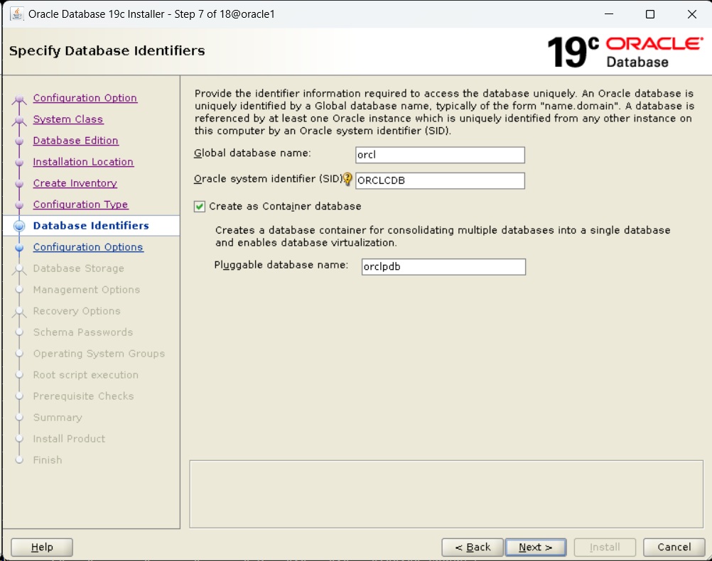 /etc/sysconfig/oracledb_ORCLCDB-19c.conf 파일의 내용을 필요한경우 수정하고 보통은 그냥 그대로 진행하면 된다.