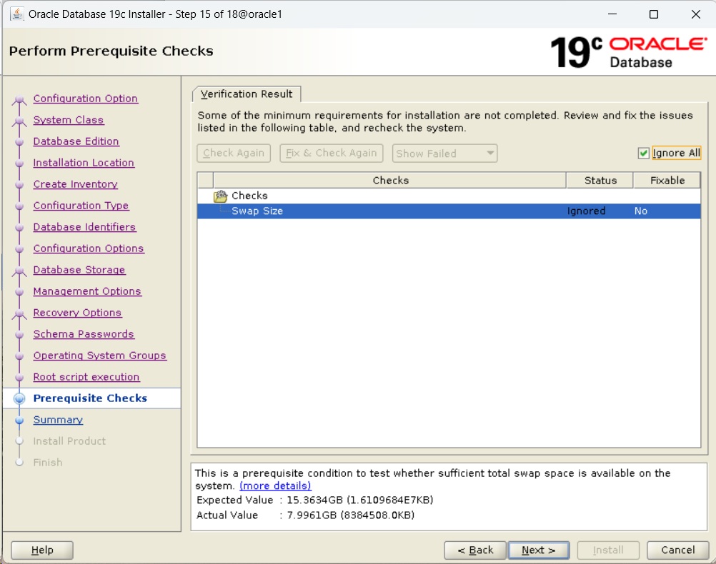 Oracle Database 19c는 공식문서상에 RHEL8/9 가 지원된다고 되어있지만 설치할때 오류가 발생한다.