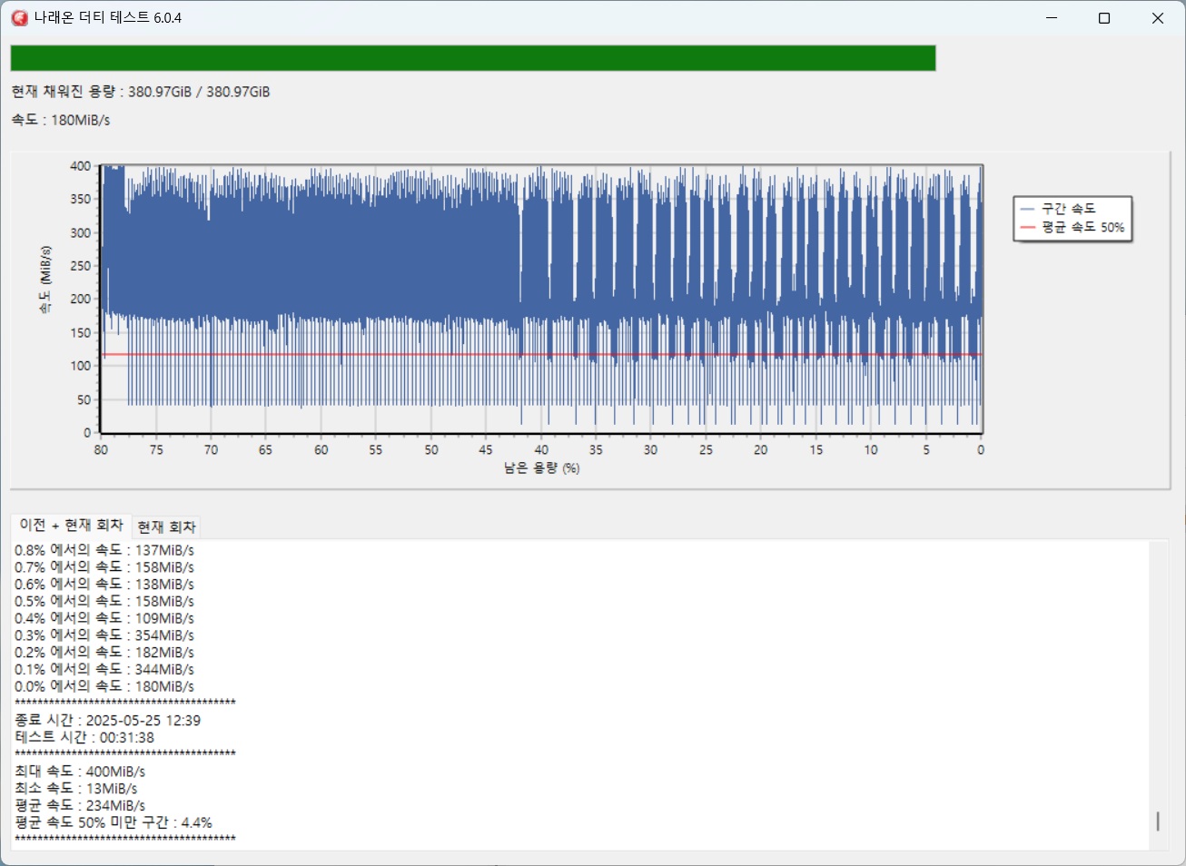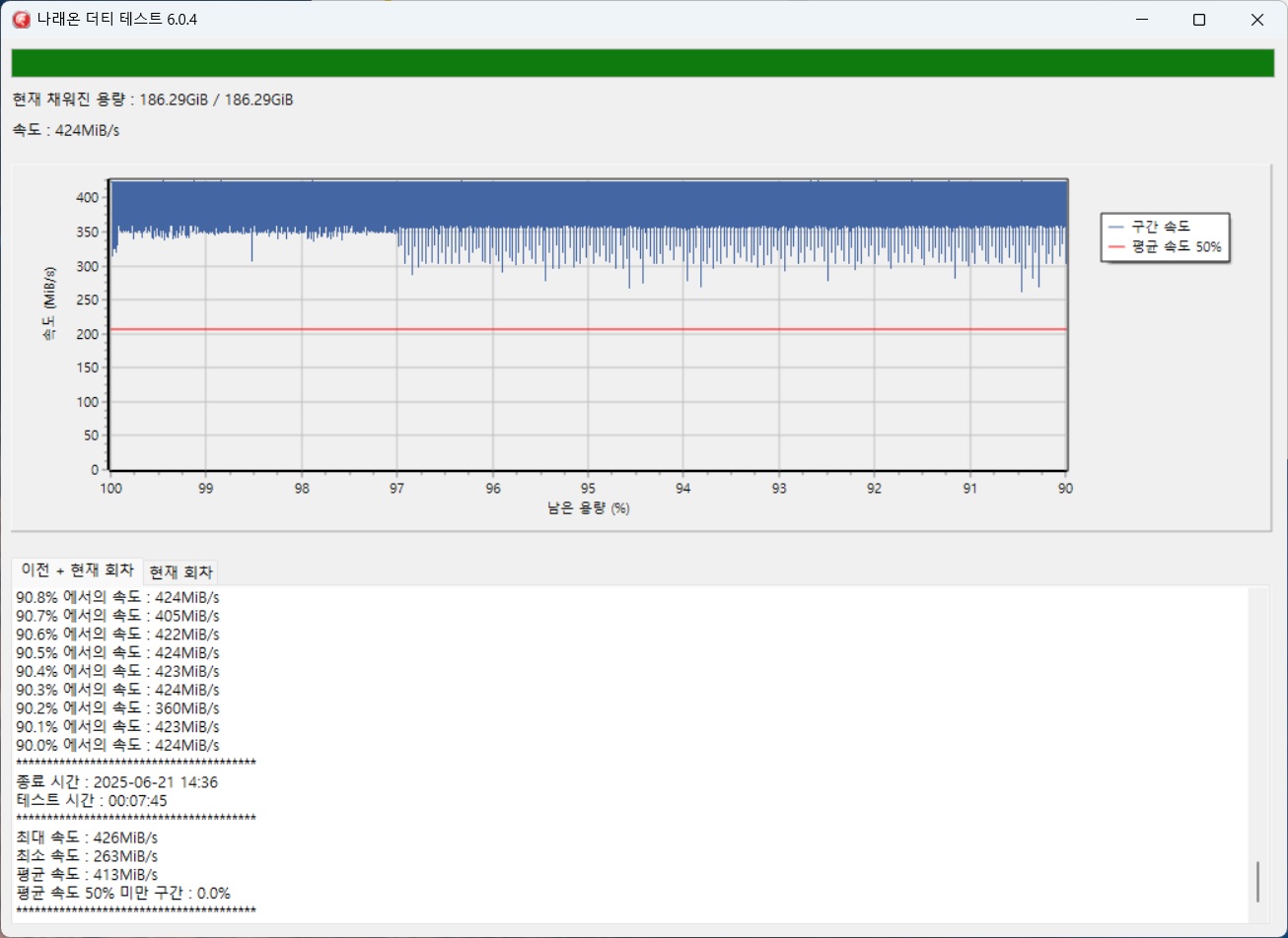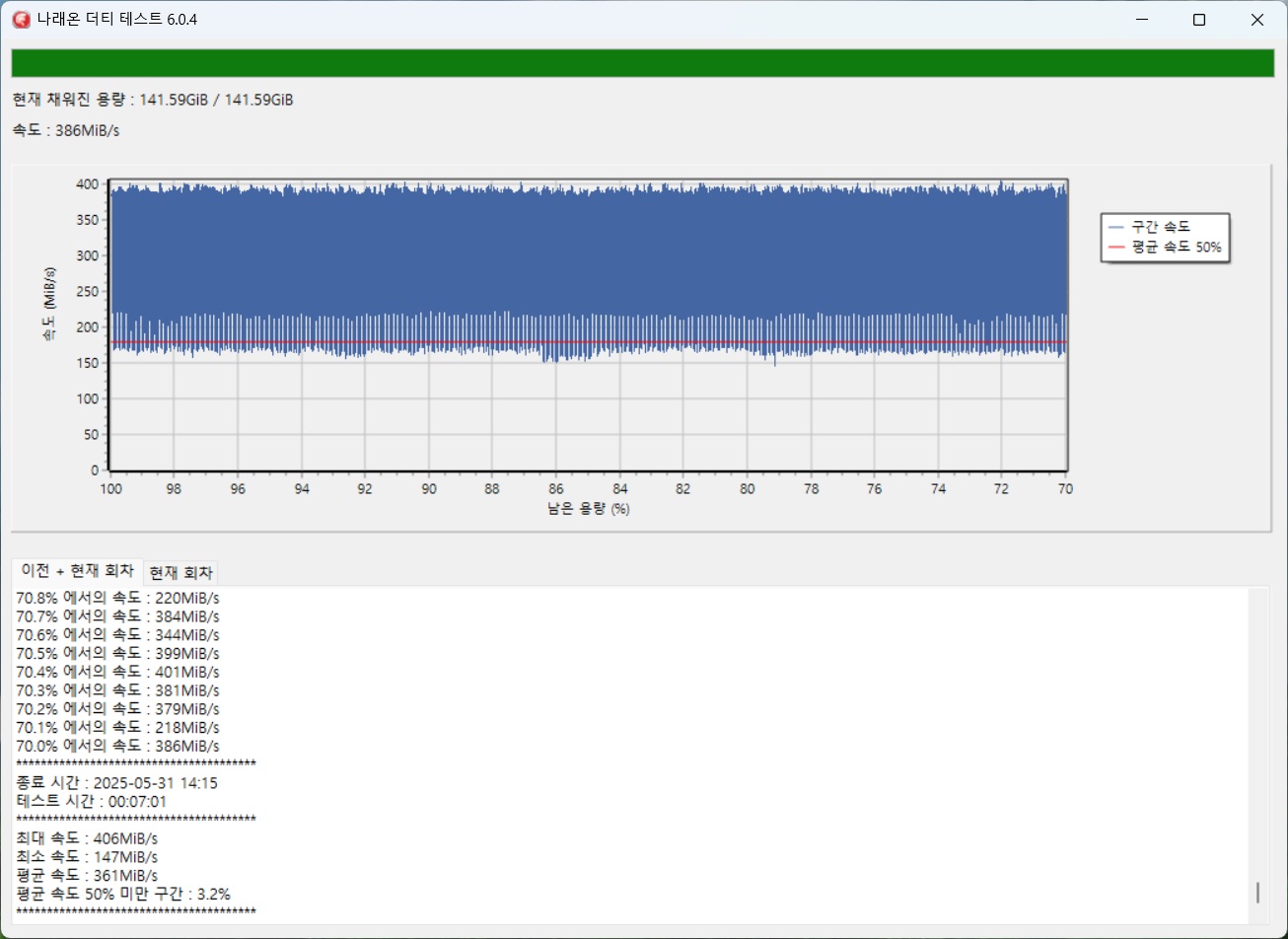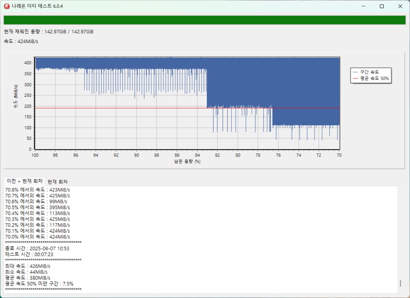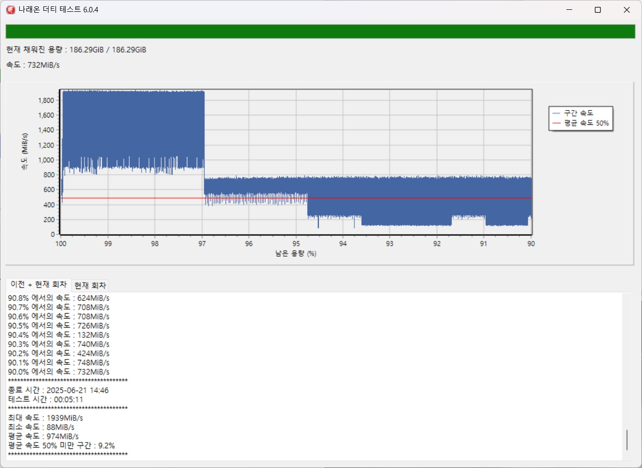 SSD형 제품은cache메모리가 별도로 탑재된 제품의 경우전체용량 테스트진행함