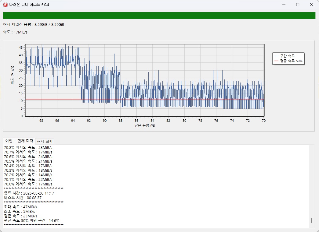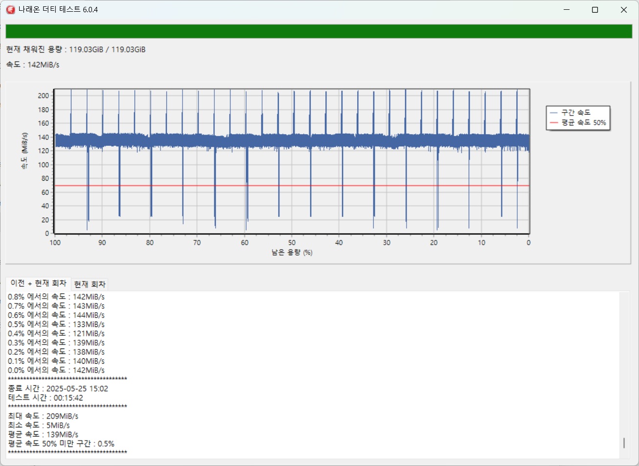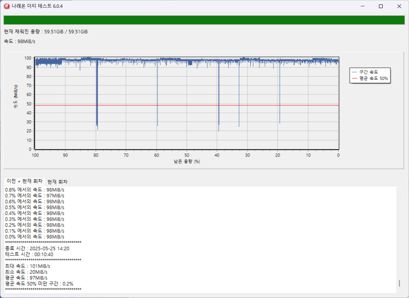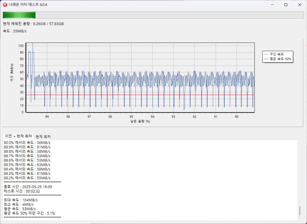 최대 50GB 까지만 테스트를 진행하였음 - 더티테스트시