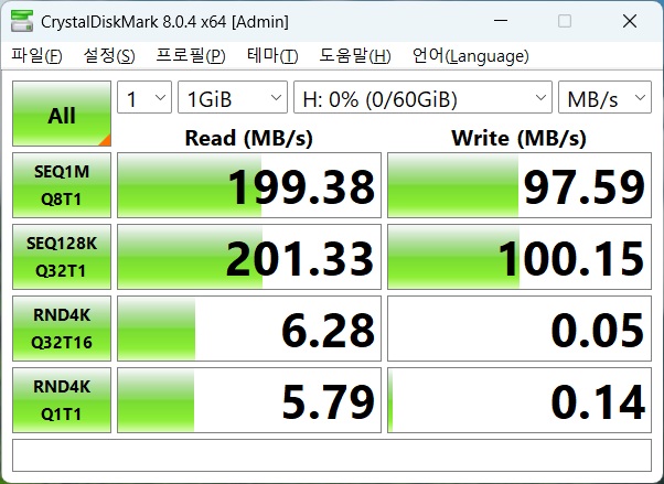 | 리뷰안 | UX200 | O | 64 GB | 210 MB/s | 100 MB/s | 97 MB/s | 30,000 | ||||