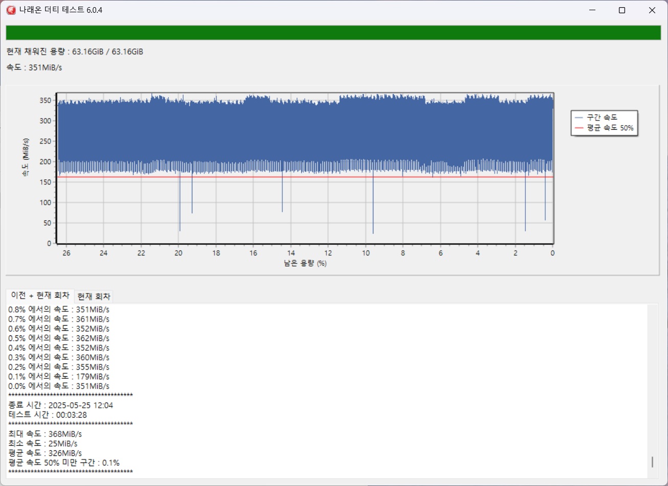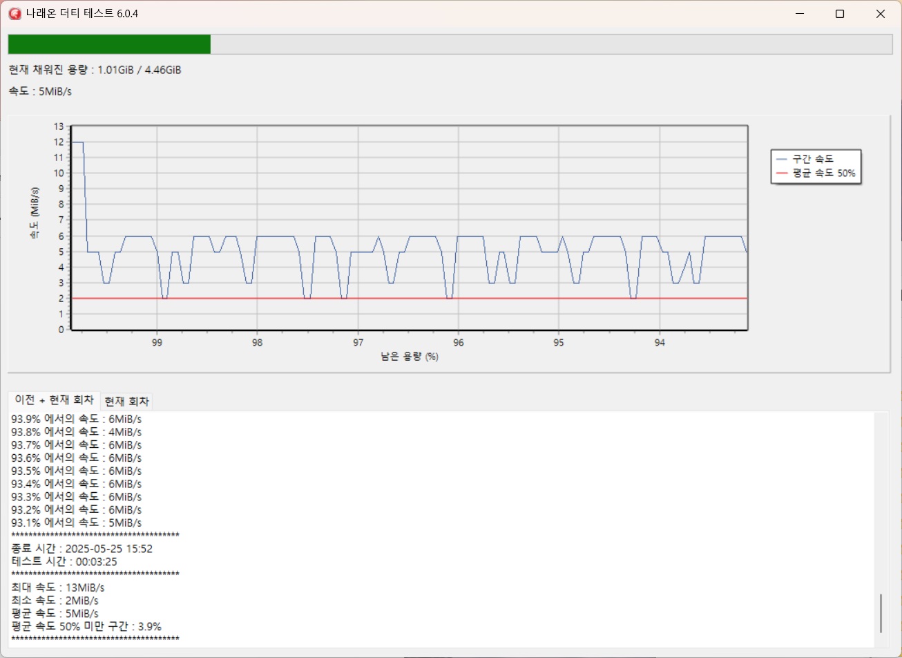 - 더티테스트 조건은 USB flash memory 특성상 지속쓰기 저하를 체크하기 위해