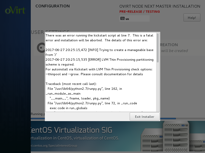 RHV/oVirt 4.x Baremetal Hypervisor 설치 시 파티션을 수동으로 생성하거나 했을때 설치 마지막 과정에서 스크립트 오류가 발생하는 경우가 있다.